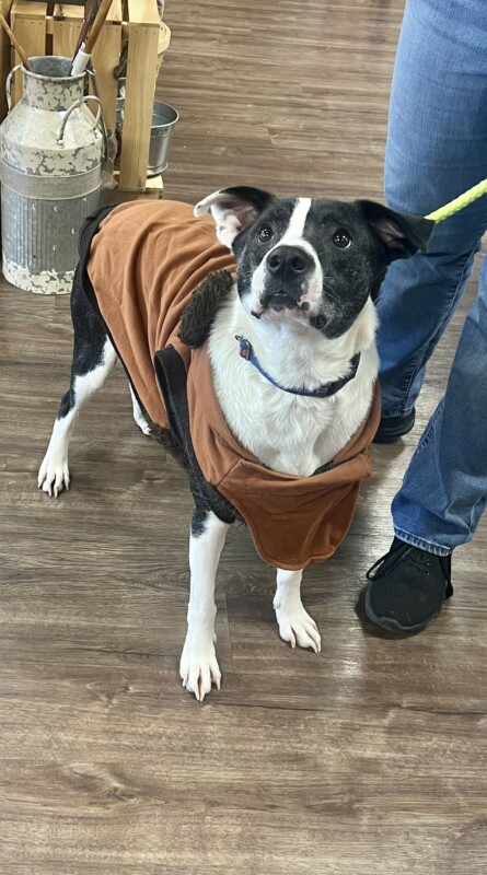 Meet Bubbie, a charming neutered male hound/terrier mix with a striking white coat adorned with black markings. This friendly and energetic boy is full of personality and eager to find a loving forever home. Bubbie enjoys playtime, outdoor adventures, and bonding with his humans. With his keen hound senses and terrier spunk, he’s both curious and intelligent, making him an excellent candidate for training and fun activities. Whether it’s a long walk, a game of fetch, or simply cuddling up at the end of the day, Bubbie is ready to be a loyal and loving companion.